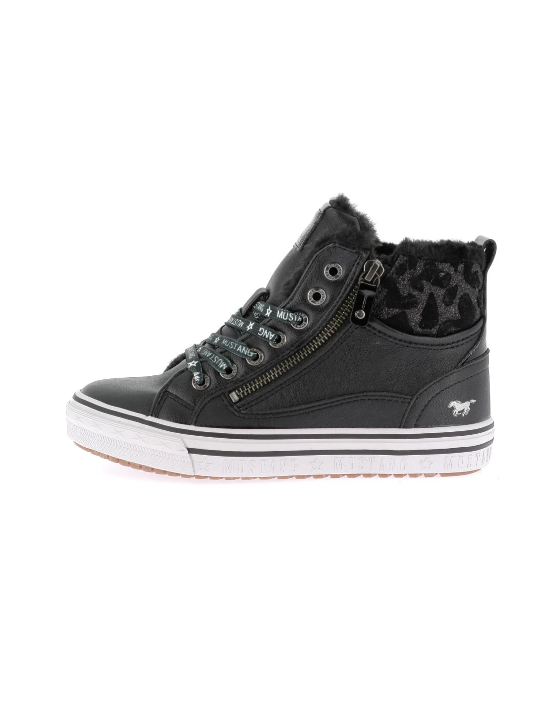 Les baskets MUSTANG 1365603 pour femme combinent confort et style. Leur design noir moderne, avec une fermeture à lacet et une fermeture éclair, permet un ajustement parfait. La tige en synthétique et la semelle extérieure en synthétique assurent légèreté et durabilité, tandis que la semelle intérieure en textile offre un confort optimal tout au long de la journée.